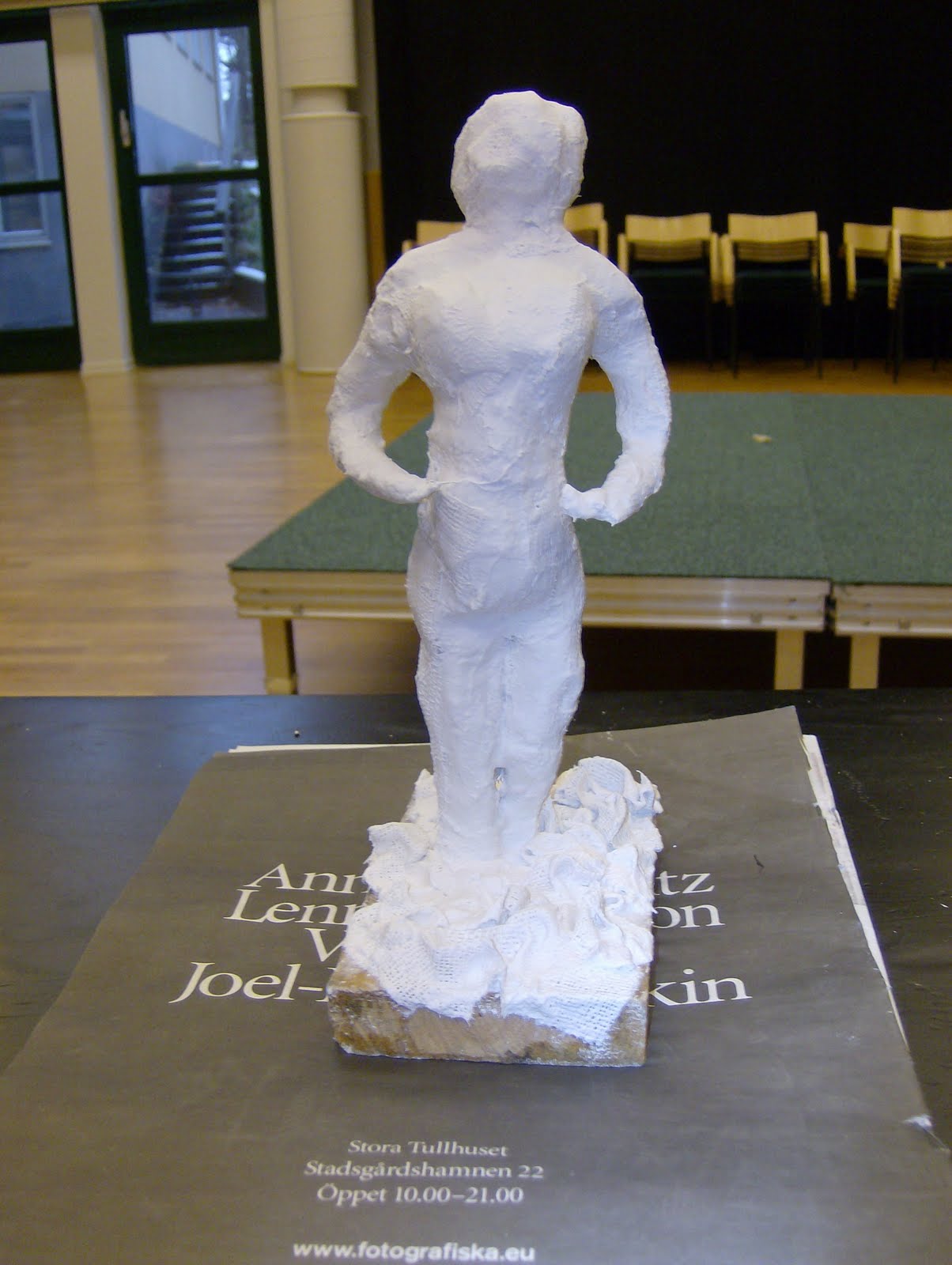 en fredag satte vi på musik och delade upp oss i grupper, sedan skulle varje grupp måla av modellen under tjugo minuter, under tyst samarbete skulle alla måla tillsammans. efteråt fick grupperna prata om hur det hade gått, och vad som hände. det var en utmaning, men också lekfullt och inspirerande...
